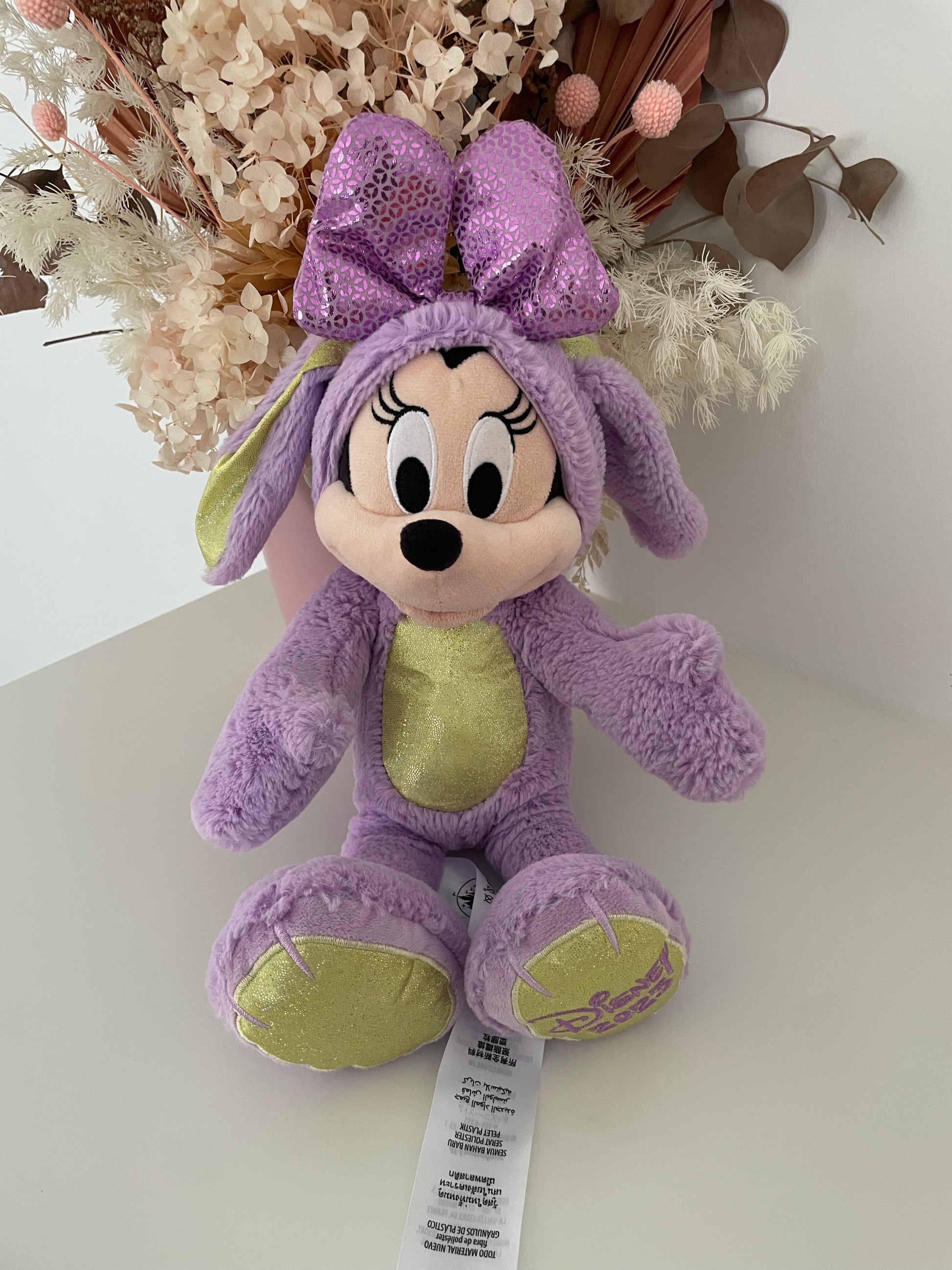 Minnie Mouse Bunny is a bundle of springtime joy! She adores pastel colors, fresh flowers, and sharing little acts of kindness. She’s thoughtful, graceful, and a little bit playful, always planning cheerful surprises for her friends.
